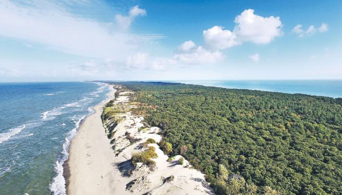 Национальный парк "Куршская коса" – это узкая полоска суши между двумя водоёмами: Балтийским морем и пресноводным Куршским заливом, её уникальность в редком сочетании природного и культурного наследия. Здесь можно насладиться морским бризом, прогуливаясь по белопесчаному пляжу, полюбоваться соснами, извивающимися в замысловатом танце, послушать несмолкаемые птичьи трели.