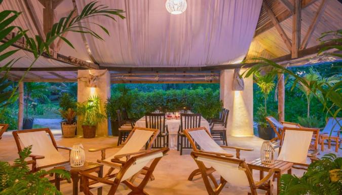 Гости могут посетить ресторан на острове с концепцией «до стола» и полюбоваться закатом. В отеле Denis Private Island работает спа-салон, где гости могут побаловать себя различными процедурами.