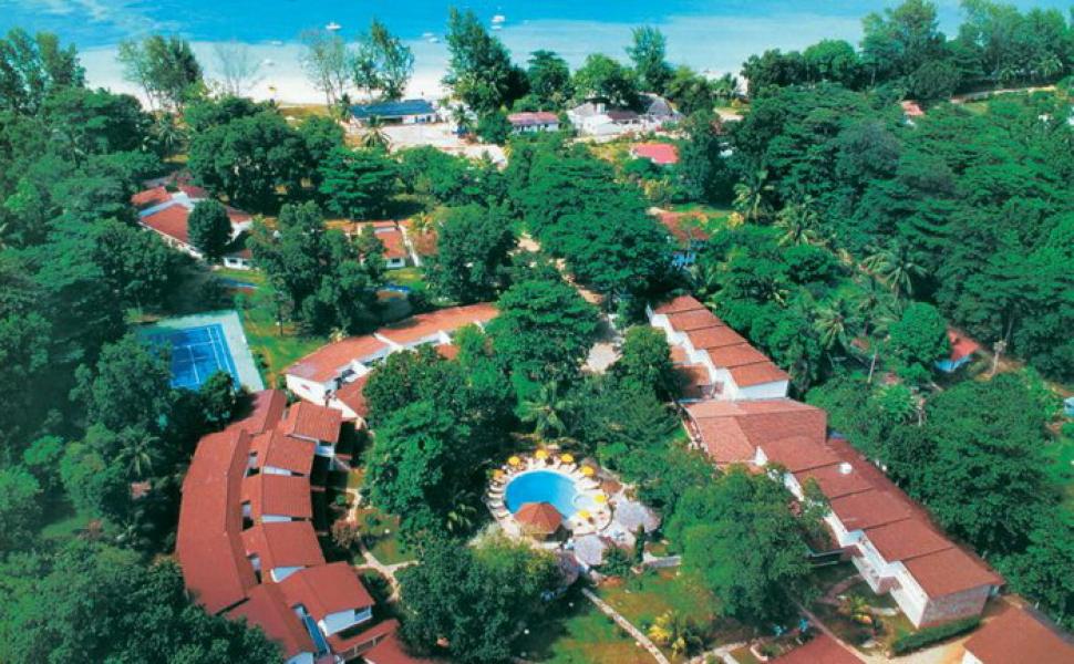 Отель в северо-восточной части острова Праслин представляет собой несколько 2-этажных зданий, расположенных вокруг бассейна. Песчаный пляж — через дорогу. Для спокойного отдыха.