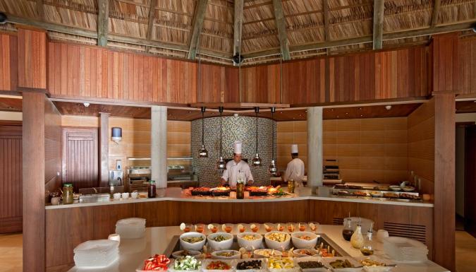 5 ресторанов: «Corossol» - главный, открыт на завтрак и ужин (шведский стол), международная кухня/ «Helios» - средиземноморская кухня/ «Adam&Eve» - азиатская кухня/ «Cyann» - французская кухня-фьюжн с азиатским акцентом, суши-бар/ «Seselwa» - рыба, морепродукты, гриль, креольская кухня.