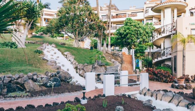 Расположение: в тихом жилом районе на юге острова, в 100 м от океана и недалеко от клуба Golf del Sur, одно из полей которого имеет 27 лунок. Расстояние до аэропорта Тенерифе Южный составляет всего 4км.