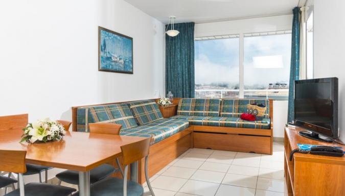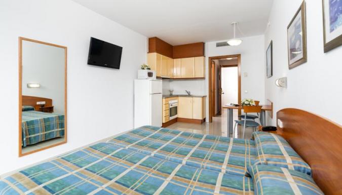 Апартаменты отеля Costa Encantada оборудованы лаунджем с диваном-кроватью и телевизором с плоским экраном, а также мини-кухней с холодильником.