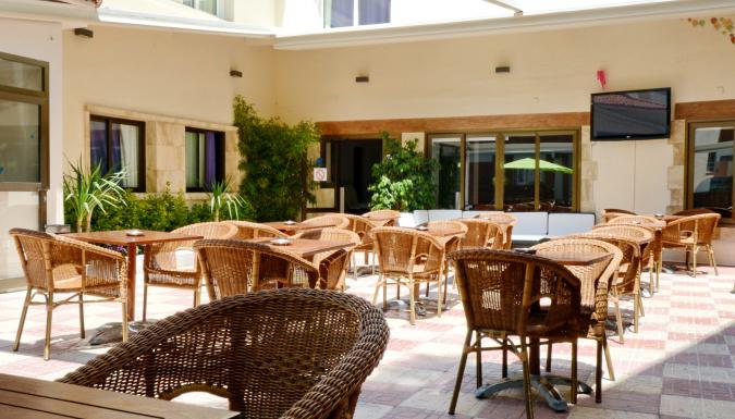 В ресторане отеля накрывают "шведский стол" из блюд средиземноморской и интернациональной кухни.