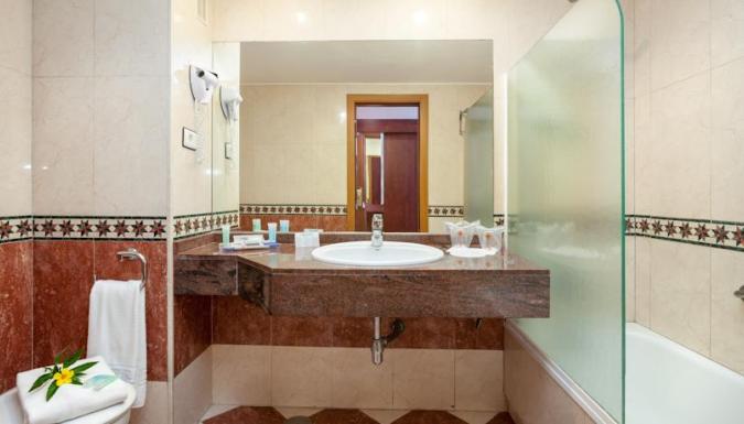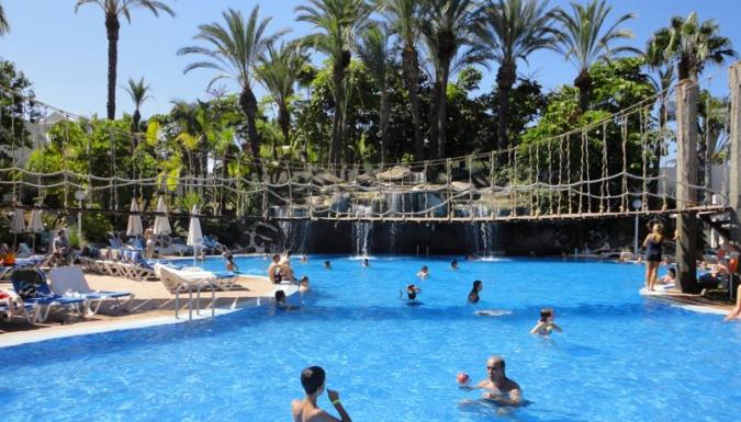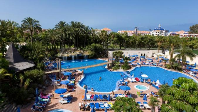 Отель прекрасно сочетает в себе оригинальный современный дизайн основного здания и традиционно канарское оформление обширной прилегающей территории, придающей этой комфортабельной гостинице особое экзотическое очарование. Интересной достопримечательностью, заслуживающей упоминания, является великолепный искусственный водопад, низвергающийся в глубину голубых вод бассейна. Расположение. В фешенебельной зоне побережья Playa de Las Americas, в 300 м. от пляжа, недалеко от международного аэропорта Reina Sofia. Номера. В каждом номере: ванная комната, телефон, телевизор, музыкальный канал, кондиционер, сейф (платный), терраса, минибар - по запросу. Сервис. Питание: завтрак - шведский стол, обед и ужин - смешанные меню и шведский стол. На территории к услугам гостей: большой бассейн, разделенный на 2 секции, одна из которых в зимнее время подогревается, детский бассейн, сауна, 2 ресторана, 5 баров (в том числе у бассейна), небольшой спортзал, дискотека в одном из баров, живая музыка 2 раза в неделю, теннисный и сквош-корты, телевизионный салон, детский мини-клуб (4-12 лет), игровая комната, няня к ребенку (по запросу), настольный теннис, бильярд, магазин, комната для хранения багажа, прачечная, аренда машин, ежедневные дневная и вечерняя развлекательные программы. Пребывание с домашними животными не допускается.