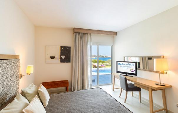 Double Room(35 м2): ванна и/или душ, фен, косметическое зеркало, банные халаты и тапочки, полотенце для бассейна, кондиционер, отопление, сейф, мини-бар, выбор подушек, WiFi, телевизор, телефон и терраса (10 м2). Junior Suite(42 м2): ванна и/или душ, фен, косметическое зеркало, банные халаты и тапочки, полотенце для бассейна, кондиционер, отопление, сейф, мини-бар, выбор подушек, WiFi, телевизор, телефон, выделенная зона для отдыха. Терраса (10 м2).