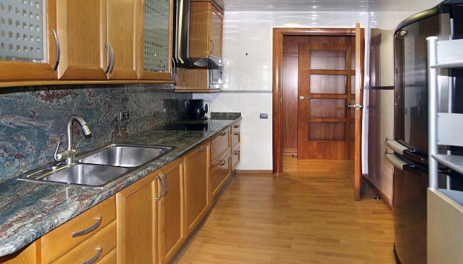 Кухня полностью оборудована: холодильник, морозильная камера, плита с духовкой, посудомоечная машина, вытяжка, микроволновая печь, чайник, посуда/приборы, кухонные принадлежности, стиральная машина.