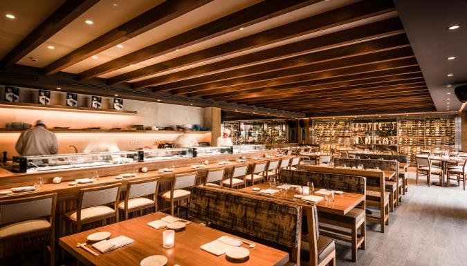 Завтрак «шведский стол» накрывают в зале для завтраков ресторана Nobu. Фирменный ресторан отеля специализируется на японской и перуанской кухне.