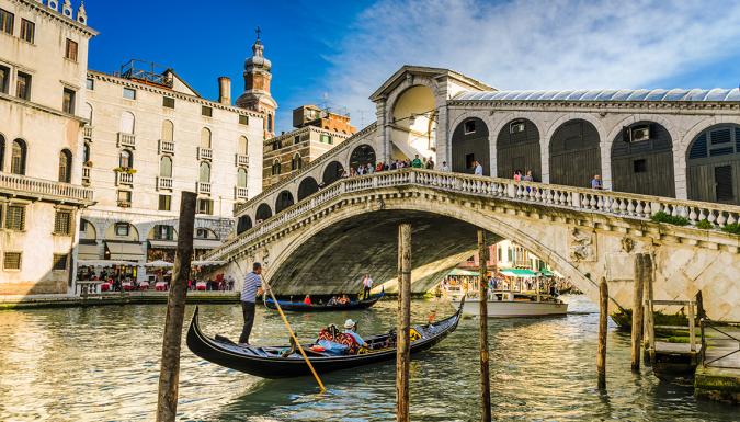 Подобного Венеции города нет на всей планете. Построенный на сваях, он словно парит над лагуной в прозрачном воздухе. Архитектурные творения, невероятным образом созданные многими поколениями на труднейшей для застройки местности, в созвучии с водой каналов и светом, образуют единственную в своем роде гармонию. Добравшись от порта до Венеции на частном корабле, мы отправимся на пешеходную экскурсию по улицам этого прекрасного города. Где-то пригибая голову, мы пройдем по столь узким улочкам, что можно упереться руками в соседние дома. А где-то неожиданно окажемся на мостике через очередной канал, который преграждает путь. И все же главное очарование города в прекрасных фасадах дворцов, обрамляющих каналы, гладь воды которых то и дело рассекают гондолы и моторные лодки, из которых разглядывают город туристы.