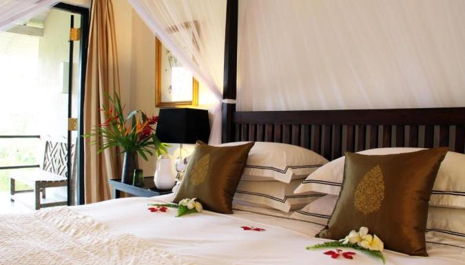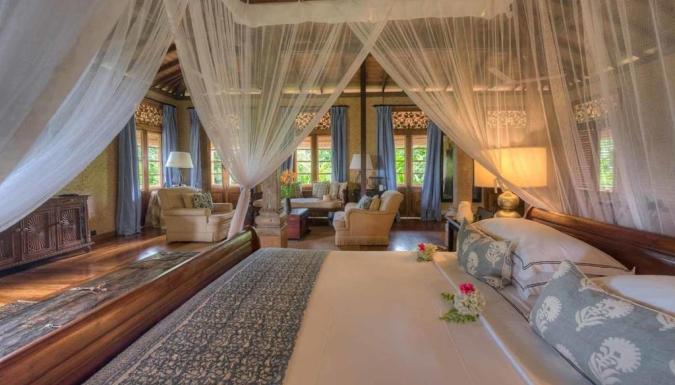 Просторные номера с соломенными крышами, деревянным полом и роскошными кроватями с балдахином. В них есть зоны отдыха с удобными диванами и красочными тканями. Доступны сейф и мини-бар.