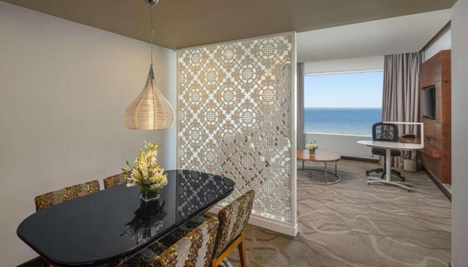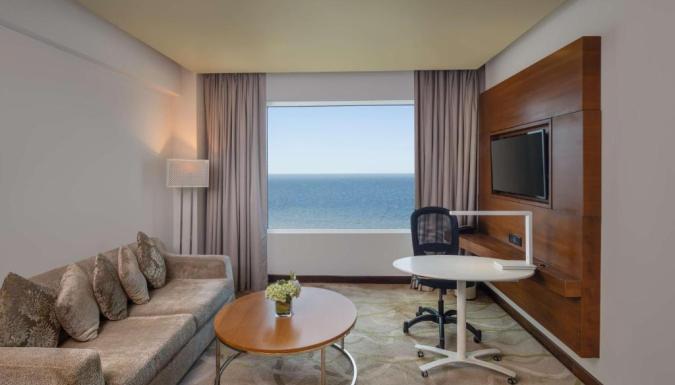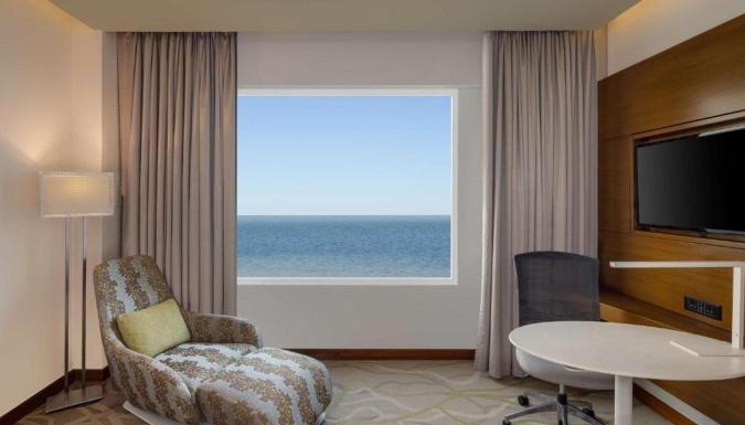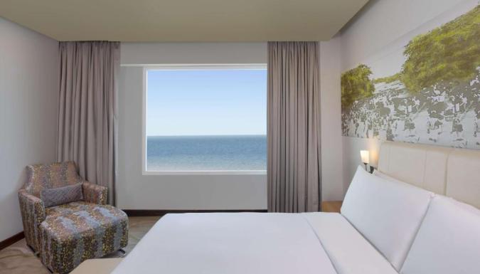 Стильные номера с обилием естественного солнечного света и потрясающим видом на море или городские пейзажи оснащены кондиционером, ковровым покрытием, шкафом с сейфом в номере, гостиным уголком, телевизором с плоским экраном и кабельным телевидением, а также принадлежностями для чая/кофе. Современные ванные комнаты оснащены туалетными принадлежностями и феном.