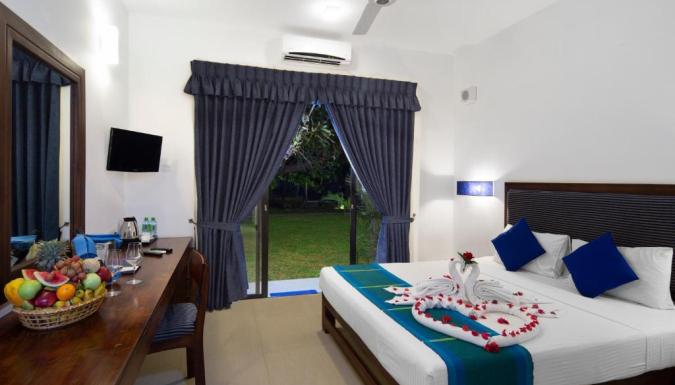 В номерах в The Blue Wave Hotel установлен кондиционер, сейф и телевизор с плоским экраном. Среди прочих удобств — письменный стол, чайник, холодильник и мини-бар, а также собственная ванная комната с душем. В собственной ванной комнате есть бесплатные туалетно-косметические принадлежности. Гостям The Blue Wave Hotel предоставляются постельное белье и полотенца.