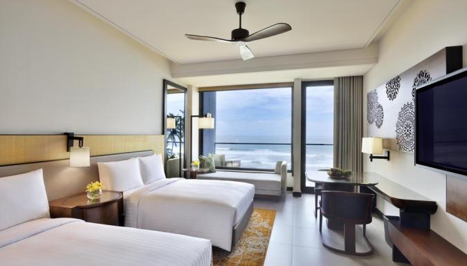 К услугам гостей прибрежного курортного отеля Weligama Bay Marriott номера рядом с пляжем, детский бассейн, который работает круглый год, бассейн для релаксации и открытый бассейн с дорожками. Гости могут заняться водными видами спорта, посетить близлежащий форт Галле или отправиться в поездку для наблюдения за китами. На территории разбит сад с садовой мебелью. В число прочих удобств входят халаты, мини-бар и гладильные принадлежности.