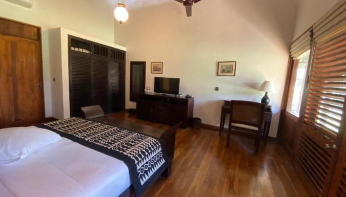 В номерах курортного отеля Weligama Bay постелены деревянные полы и установлена мебель из темного дерева. Номера оборудованы кондиционером, сейфом и мини-баром. К услугам гостей телевизор с плоским экраном и DVD-плеер, а фильмы можно взять в DVD-библиотеке отеля.