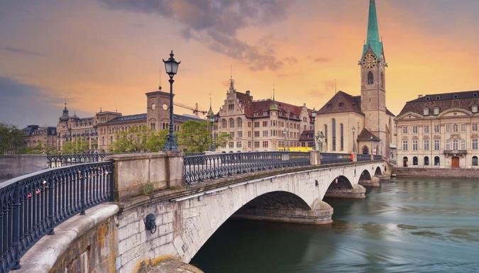 Цюрих - город с самым высоким качеством жизни, самый большой экономический и культурный центр Швейцарии. И в тоже время благодаря уникальному сочетанию ландшафта и архитектуры один из самых красивых городов Европы. Уютно расположившись между двумя горами, город амфитеатром поднимается по склонам и, разрезанный посередине рекой Лиммат, раскрывается по обеим сторонам Цюрихского озера своими лучшими фасадами. В хорошую погоду за озером над горизонтом парит сияющая снегами панорама Швейцарских Альп. На левом берегу реки Лиммат расположились современные торговые кварталы, а на правом - исторический цент со старинными домами, стоящими на узких улочках, которые мы посетим в ходе экскурсии. Нам посчастливится увидеть здание городской Ратуши, знаменитую готическую церковь Фраумюнстер, украшенную пятью витражными окнами, созданными самим Марком Шагалом. До их установки в 1970 году Фраумюнстер была известна лишь своей необычной архитектурой - «одноглавая» церковь построена не по канону. С появлением витражей готический собор приобрел мировую известность. Мастер трудился над созданием витражей два года и, несмотря на преклонный возраст - к моменту окончания работы Шагалу было уже 83 года, - не только делал эскизы, но и сам обрабатывал поверхность стекла. Далее мы посетим один из символов города - Гроссмюнстр, выйдем на северный берег Цюрихского озера и побываем на Банхофштрассе, где по легенде ранее располагался Ров лягушек.