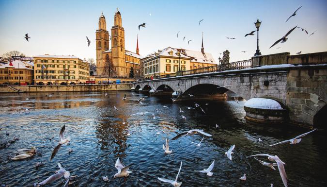 Далее нас ждет Цюрих – город, расположенный на северо-востоке Швейцарии, — это город точного времени и состоятельных людей. Компактный, далеко не мегаполис, но все же «глобальный» — такой статус он получил за свою значимость на мировой экономической арене. Богатый, и потому слегка заносчивый. Впрочем, этот легкий снобизм воспринимается как должное, едва перед глазами встают идеальный аэропорт, идеальные дороги, идеальное озеро, дома и магазины.