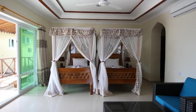 Отель Zanzibar Ocean Blue расположен в Паже, напротив берега Индийского океана с потрясающим песчаным пляжем