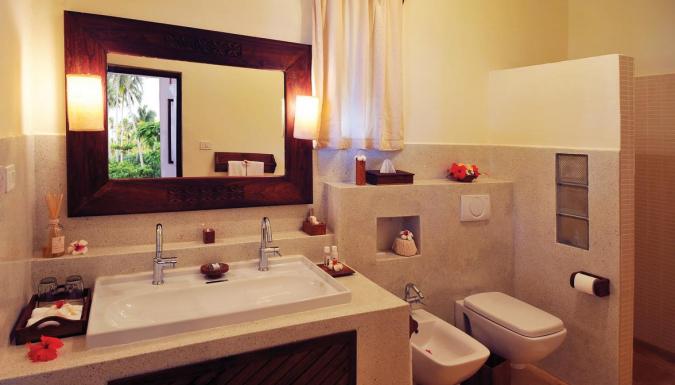 Кондиционер, потолочный вентилятор, ТВ, телефон, кровать king-size/ 2 односпальные кровати с москитной сеткой, сейф, ванная комната, фен, банные принадлежности, мини-бар, чайные/ кофейные принадлежности.