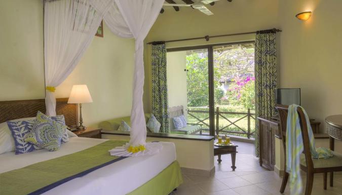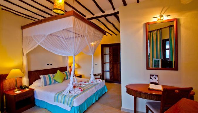 В курортном отеле Sultan Sands на берегу Индийского океана вы можете поселиться в африканских хижинах традиционного стиля с балконом или террасой. К услугам гостей ресторан "шведский стол" и бар с террасой и шезлонгами.