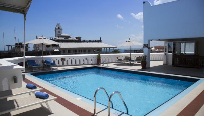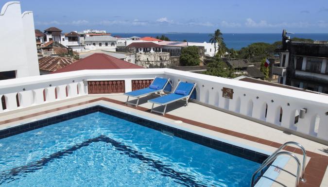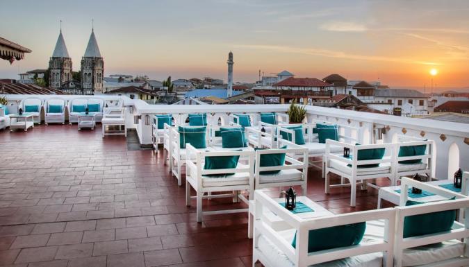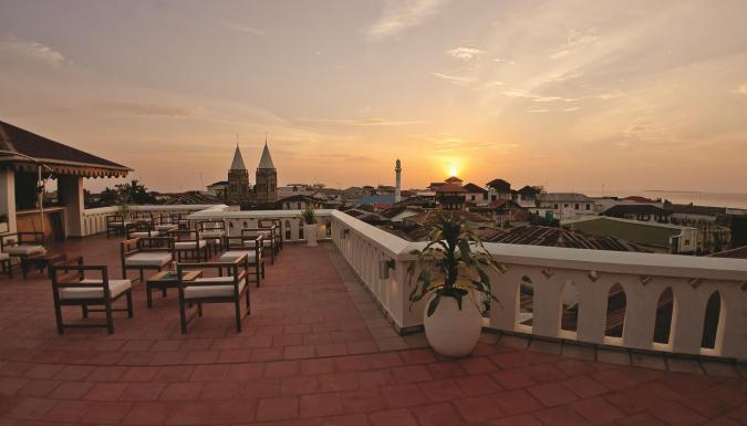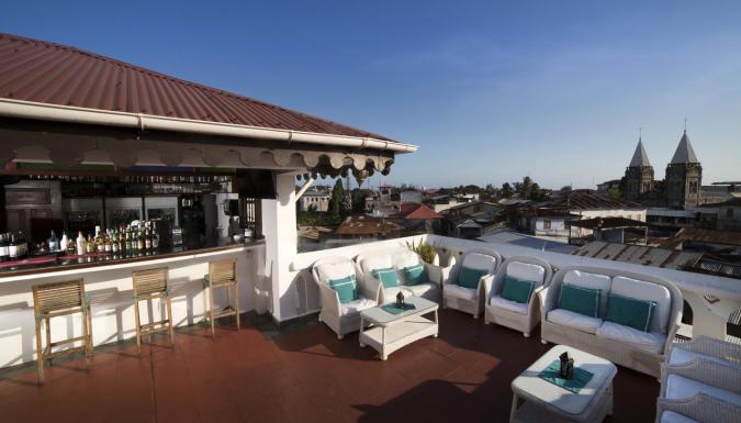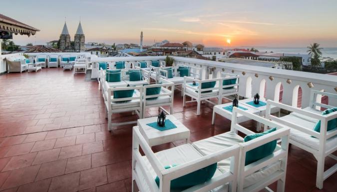 Из коктейль-бара отеля Maru Maru открывается 360-градусный вид на Каменный город и Индийский океан.
