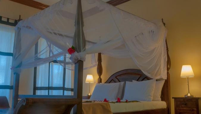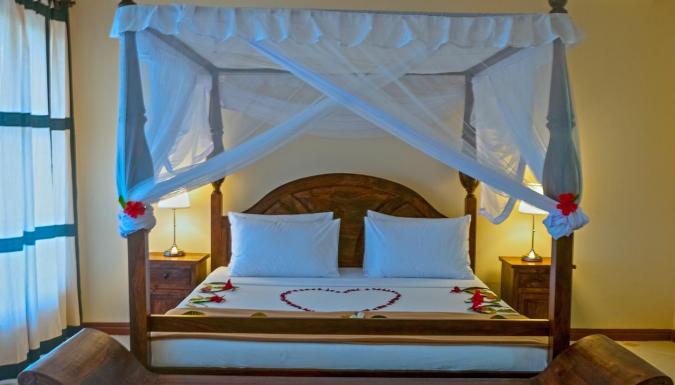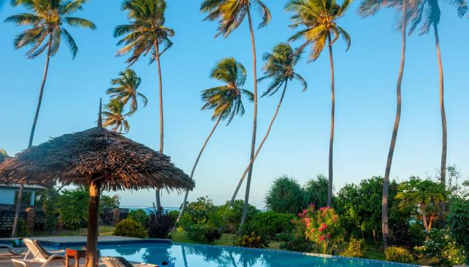 Zawadi Beach Villas - это поистинне фантастический оазис красоты, гармонии и уюта, расположенный в городке Матемве, в 37 км от аэропорта Занзибар. Со всех номеров открывается потрясающий вид на лазурный океан, бассейн и густой, ароматный тропический сад, в котором гости смогут любоваться пестрым разнообразием десятков цветов, деревьев и удивительных кустов. Здесь всегда тихо, и прозрачным светлым утром гости отеля пробуждаются под нежное щебетание птиц и ласковый пенистый прибой Индийского Океана. Самой большой гордостью отеля, несомненно, является великолепный белоснежный пляж, красоту которого невозможно запечатлеть ни одной фотокамерой в мире. Океан призывно влечет погрузиться в свои теплые воды, маня пологим песчаным заходом. А отплыв буквально на пару метров, можно любоваться волшебством подводного мира. Еще одна заманчивая фишка отеля – это невообразимое мастерство шеф-повара ресторана. Он вытворяет гениальные шедевры кулинарии, поэтому гости будут всегда счастливы и сыты.