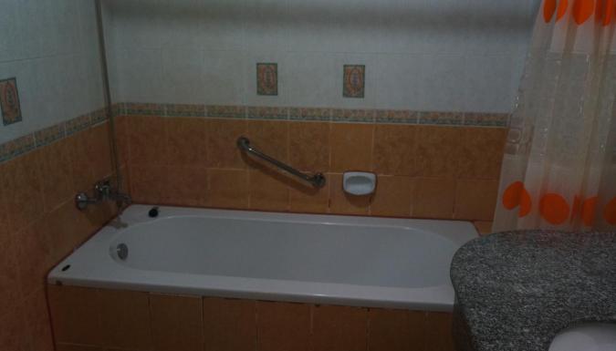 - ванная комната с душевой кабиной, феном и туалетными принадлежностями.
