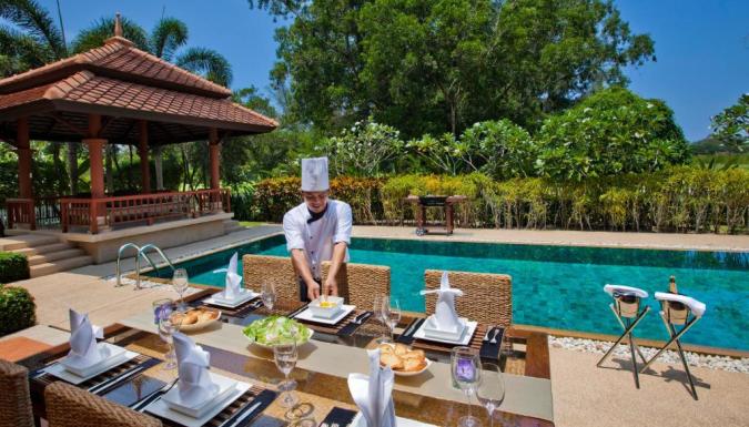 В ресторане Panache сервируют завтрак «шведский стол» и подают блюда тайской и западной кухни у бассейна. В отеле осуществляется доставка еды и напитков в номер. Также можно заказать услуги повара для обслуживания частных вечеринок.