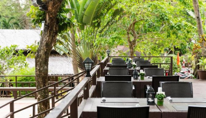 В круглосуточном ресторане курортного отеля Baan Krating сервируют блюда интернациональной и тайской кухни. В баре можно заказать напитки и полюбоваться закатом.