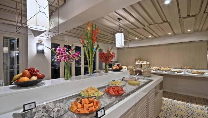 В ресторане Kantok подаются блюда местной кухни и ежедневный завтрак «шведский стол». Для гостей накрывают столики на открытом воздухе и организуются вечерние танцевальные представления. Прохладительные напитки можно заказать в баре Misty, фреш-баре и в баре у бассейна.