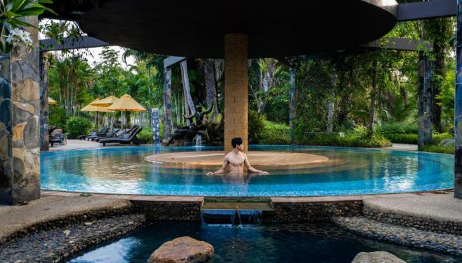 Бассейн с природными горячими источниками с температурой 40 °C One & Only и холодный бассейн с температурой 16 °C.