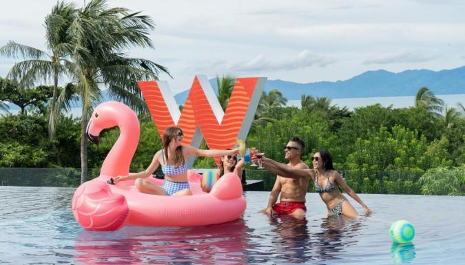 В баре WOOBAR, обслуживающим гостей отеля W днем и вечером, играет приятная музыка. Там предлагаются фирменные коктейли и необычные закуски. Бар отличается инновационным световым оформлением, а из его окон открывается вид на северное побережье Сиамского залива. В баре под открытым небом SIP, откуда открывается вид на закат и пляж, подается лучшее в мире крафтовое пиво. В баре установлены удобные низкие каучуковые кресла, огромные лампы и мебель из дерева тропических пород.