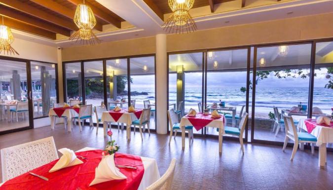 По утрам для гостей сервируют завтрак «шведский стол». Позавтракать можно на балконе курортного отеля, откуда открывается вид на море. В ресторане On The Beach подают блюда местной, азиатской и интернациональной кухни. В баре у бассейна можно заказать прохладительные напитки.