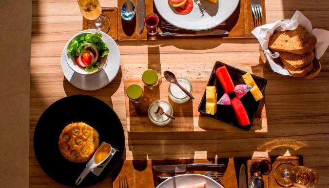 - Завтрак вкусный, со свежими фруктами, веганскими блюдами и разнообразным выбором
