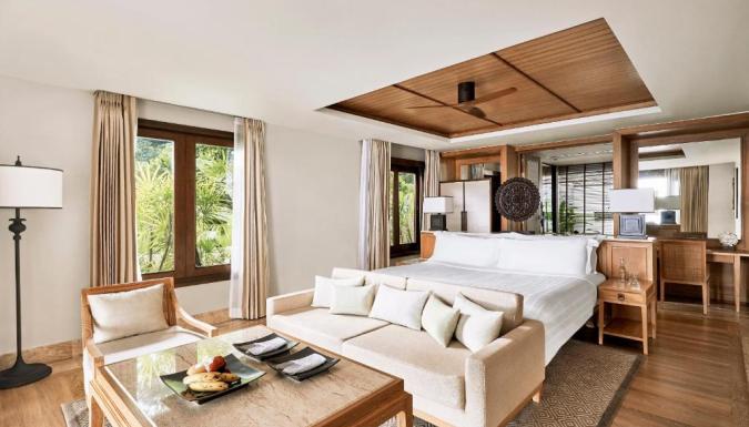 Элегантные номера курортного отеля Trisara оформлены в современном стиле, в числе удобств отдельная гостиная зона и открытая терраса. Во всех хорошо оборудованных номерах установлен телевизор с плоским экраном и DVD-плеер.