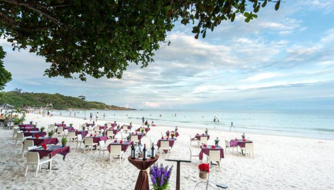 В ресторане курортного отеля Samed Grandview подают блюда местной кухни, а в лаундже можно заказать освежающие напитки, любуясь видом на море.