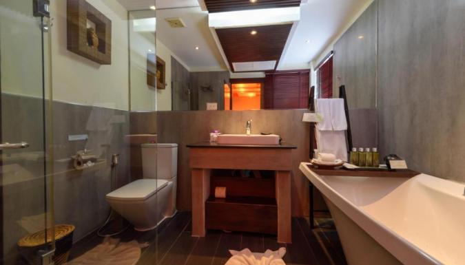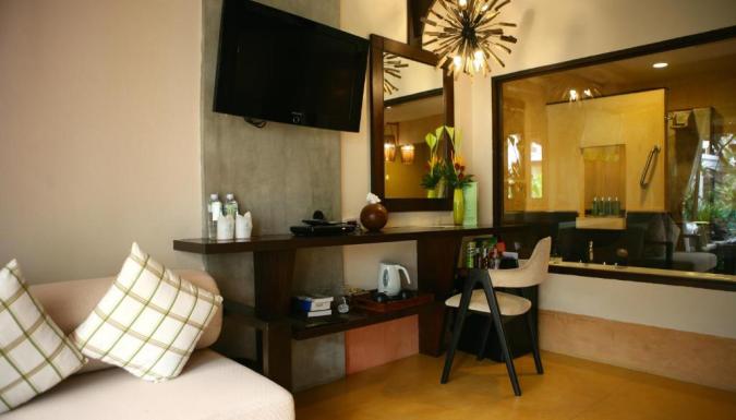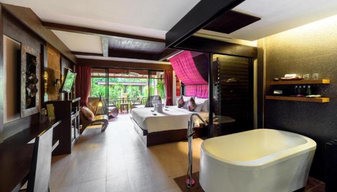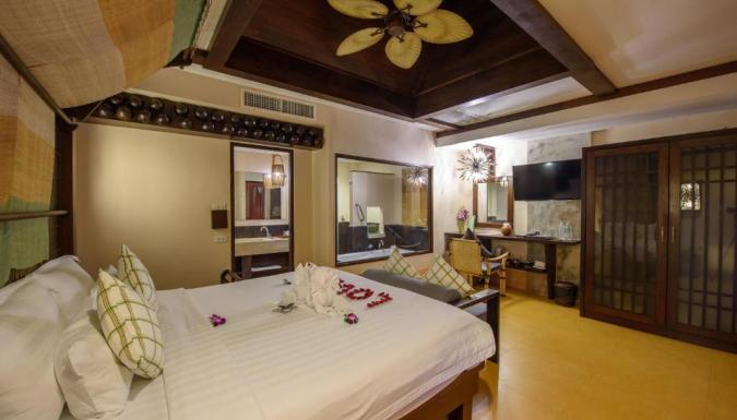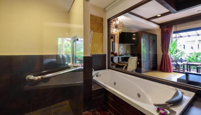 Оформленные в теплых тонах номера отделаны тайскими тканями. В числе удобств кондиционер, гостиная зона и DVD-плеер. Собственная ванная комната с ванной укомплектована феном и купальными халатами.