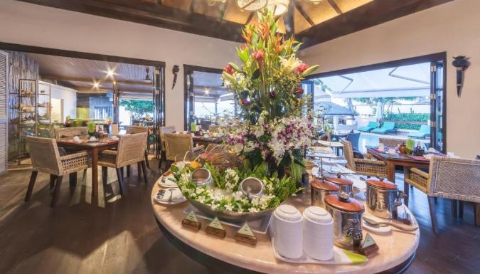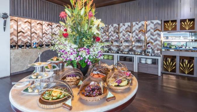 В ресторане Jasmine Rice с непринужденной атмосферой сервируют «шведский стол» с блюдами тайской и интернациональной кухни. Столы накрывают на свежем воздухе. В фойе для гостей приготовлены бесплатные сезонные фрукты.