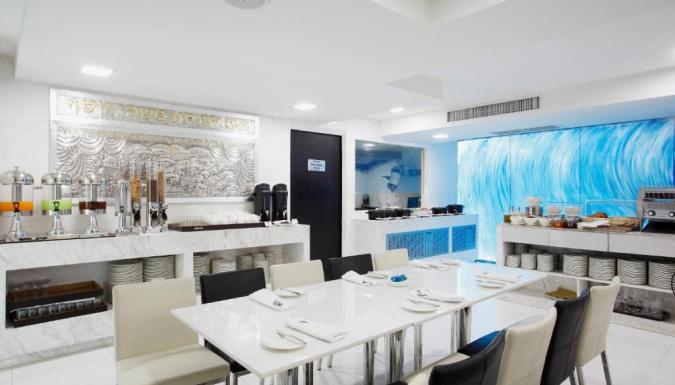К услугам гостей множество удобств. На третьем этаже отеля находится синагога, а на крыше — бассейн.