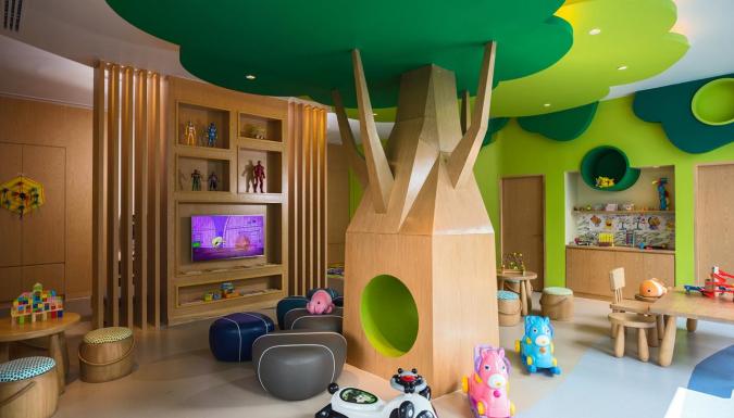 • бассейн • детский клуб (8:00-20:00) • игровая площадка • детская кроватка • стульчики в ресторане • детское меню • няня (платно)