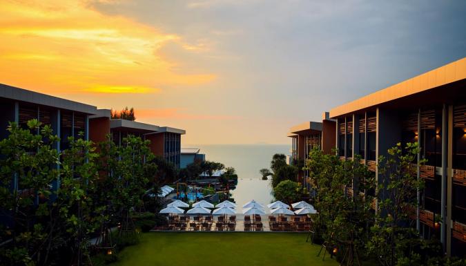 Современный комфортабельный сетевой отель – с просторными номерами и качественными услугами, на удалении от турзоны – для уединенного семейного или романтического отдыха. Расположен южнее города Паттайя, на пляже Наджомтьен, на берегу, - через небольшую дорожку от моря, в 2,6 км от аквапарка Cartoon Network Amazone (5 мин езды), в 16 км от центра ночных развлечений Паттайи – Walking Street (35 мин езды), в 131 км от аэропорта Бангкока Suvarnabhumi (1 час 55 мин), в 27 км от аэропорта U-Tapao (25 мин езды). Собственная зона на общественном песчаном пляже. Шезлонги, зонтики, пляжные полотенца – бесплатно.