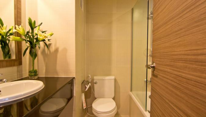 - ванная комната с ванной или душевой кабиной, феном и туалетными принадлежностями.
