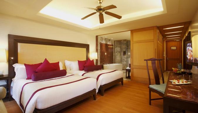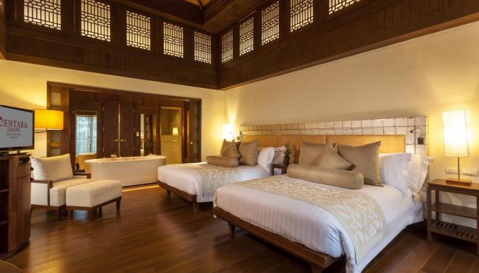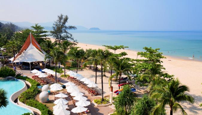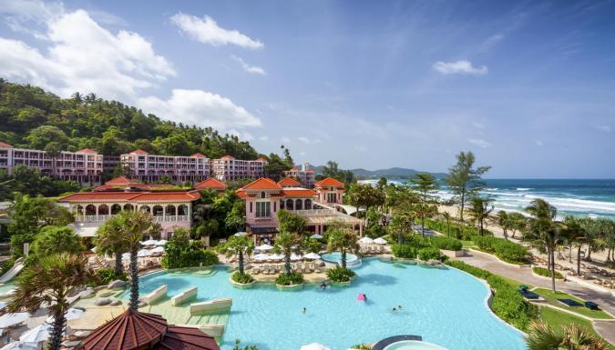 Пятизвездочный отель Centara Grand расположен на фоне живописных зеленых холмов возле пляжа Карон. Окна его номеров выходят на бухту. К услугам гостей ландшафтный аквапарк с 4 открытыми бассейнами.