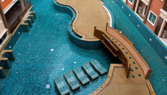 - Внутри дворика бассейн