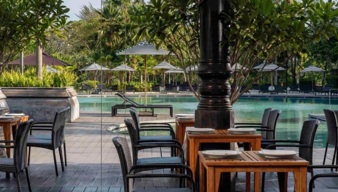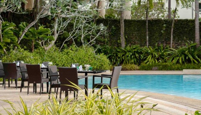 Расположенный рядом с пляжем в окружении тропической зелени курортный спа-отель Pullman Phuket Karon Beach занимает территорию площадью 30,35 га. Гости могут любоваться ухоженным роскошным тропическим садом напротив золотых песков пляжа Карон. Среди подходящих для семейного отдыха удобств курортного отеля — 8 ресторанов на все вкусы, полностью оснащенный круглосуточный фитнес-центр, 3 теннисных корта и 2 корта для сквоша. На территории можно пользоваться 5 открытыми бассейнами с лагунами и пальмами, а также кататься с двухуровневой водной горки. Работает детский клуб с батутом. Имеется большой банкетный зал без колонн. В спа-центре Eforea с 15 деревянными виллами открыт салон красоты. Поездка от курортного отеля до международного аэропорта острова Пхукет занимает около 50 минут. За дополнительную плату сотрудники организуют индивидуальный трансфер от/до аэропорта.