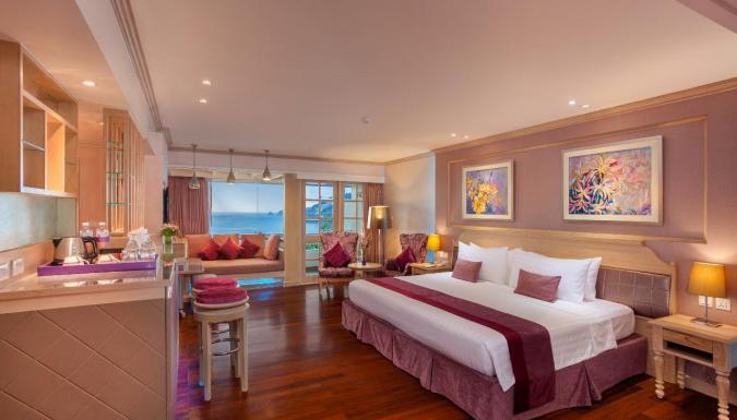 Курортный спа-отель Diamond Cliff расположен над Патонгом, в окружении красивого сада площадью 8,1 га. Из отеля открывается вид на Андаманское море и пляж Калим. К услугам гостей 3 ресторана, 3 бара и 2 бассейна. В 3 ресторанах курортного отеля Diamond Cliff с крытой и открытой зонами подают фирменные блюда интернациональной, тайской, японской и итальянской кухни, а также морепродукты. В барах Ocean View Pool и SEA можно заказать освежающие напитки и фирменные коктейли, а в баре у бассейна Waterfall — закуски, бургеры, сэндвичи и свежие смузи.