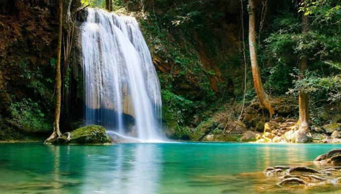 Национальный парк Эраван - одна из самых известных природных достопримечательностей провинции Канчанабури. На его территории есть что посмотреть: карстовые пещеры, в некоторых из них сохранились древние наскальные рисунки, река Квай, тропические леса, являющиеся домом для больших летающих белок, тигров, слонов, королевских кобр. Доминантой парка значится красивейший семикаскадный водопад общей протяженностью 1,7 км, расположенный в окружении зеленых джунглей. У подножия каждого каскада находятся бассейны с прекрасной изумрудной водой, в которых любят плескаться туристы. Название водопад получил из-за схожести одного из своих каскадов с древним мифическим индуистским животным Эраваном - трёхголовым слоном. В бассейнах водопада водятся небольшие рыбки гарра руфа, они питаются отмершими частицами кожи. В спа-центрах процедура омоложения кожных покровов с их помощью стоит приличных денег, здесь же мы сможем принять в ней участие совершенно бесплатно.