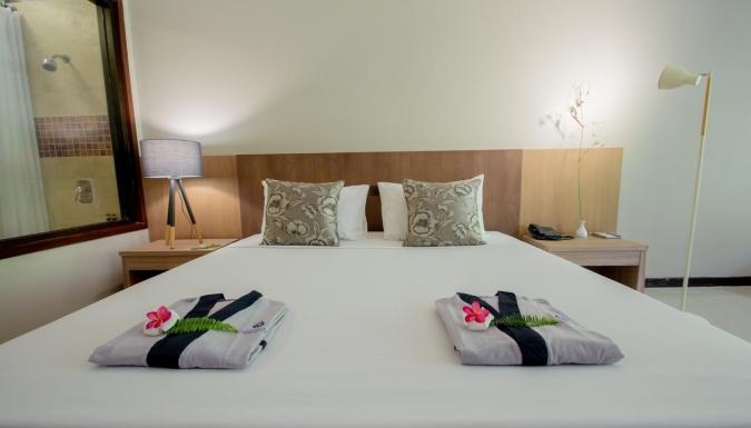 Кондиционер, ТВ (есть русскоязычный канал), DVD-проигрыватель, телефон, Wi-Fi, сейф, стол, стул, софа, мини-бар, 2 бут.воды ежедневно бесплатно, набор для приготовления чая /кофе, ванна в ванной (villa – джакузи), с туалетными принадлежностями, халаты и тапочки, фен, утюг – по запросу, балкон/терраса.