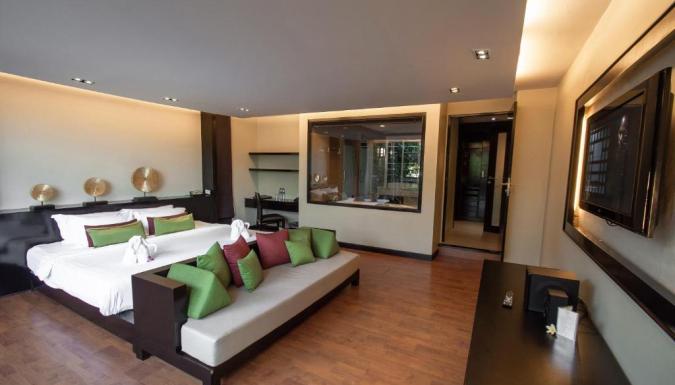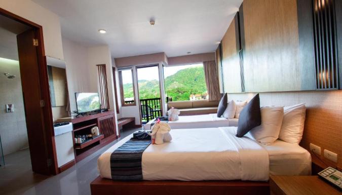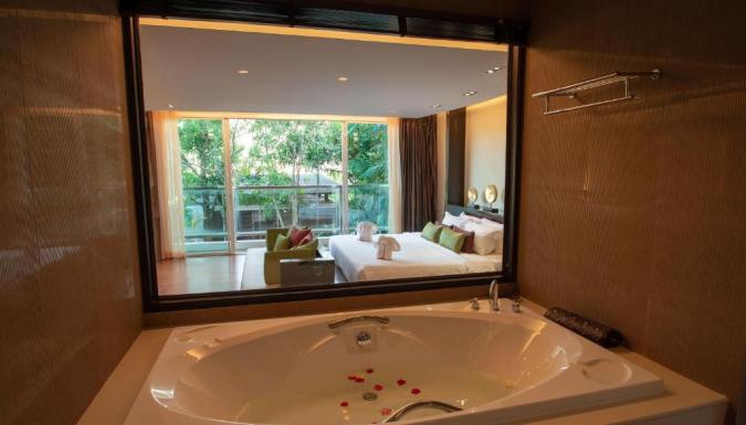 Перед гостями курорта Peach Blossom открывается вид на белые песчаные пляжи Ката и Карон. Номера располагают кушетками. Из окон открывается вид на сад, бассейн и Андаманское море.