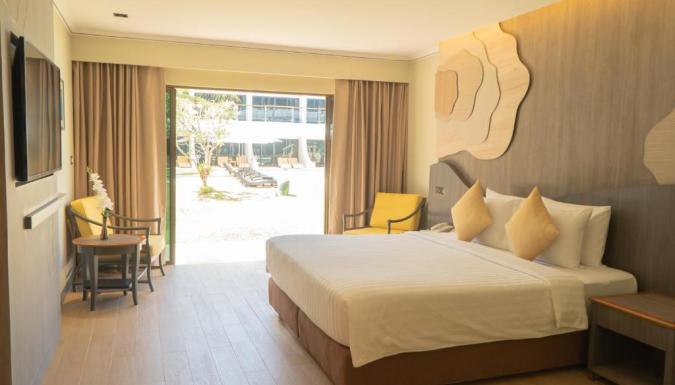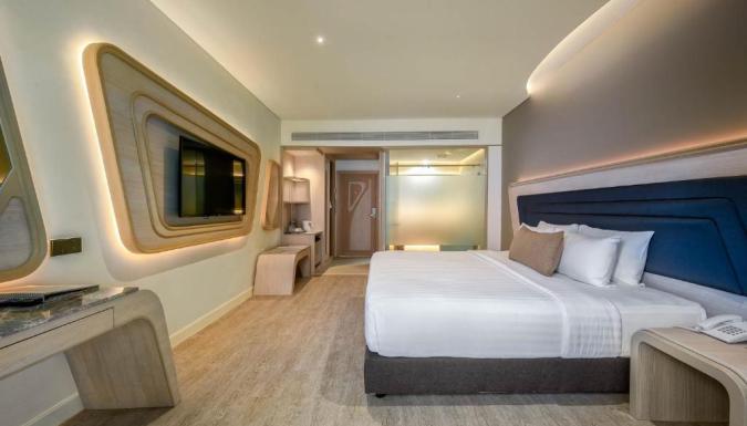 Бар, Открытый бассейн, Фитнес-центр, 3 ресторана, Детский клуб, Частная пляжная зона