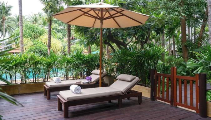 При курортном отеле работает японский стейк-хаус Benihana и кафе Garden, где подают блюда интернациональной и тайской кухни, а также сервируют «шведский стол» с различными блюдами. В баре Elephant на обед и ужин предлагают блюда интернациональной кухни и разнообразные напитки. В баре Manao у бассейна гости могут заказать блюда, приготовленные на гриле, закуски и напитки.