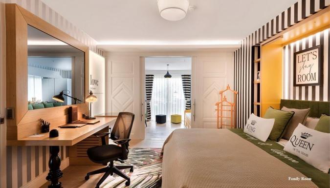 190 Luxury room - из них 4 номера для гостей с ограниченными физическими возможностями, площадь номера 62 кв.м, максимальное размещение 3 чел. Душ/джакузи, телефон, сейф, мини-бар, LCD TV, спутниковое ТВ, чайник, набор для приготовления чая и кофе, фен, центральный кондиционер